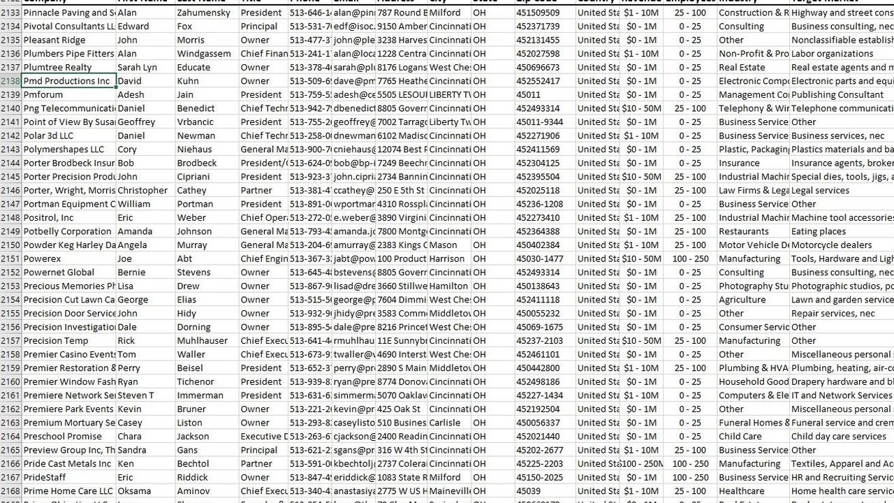 Lists have key executives and c-level business professionals at companies in target locations.